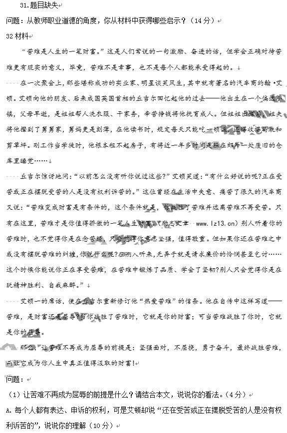 转载请注明:文章转载自 海南教师资格证网 [ http://www.jszg.hi.cn/ ]文章归属栏目: 综合素质