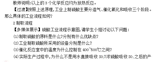 2018下半年高中化学教师资格证面试真题:硫酸的制备