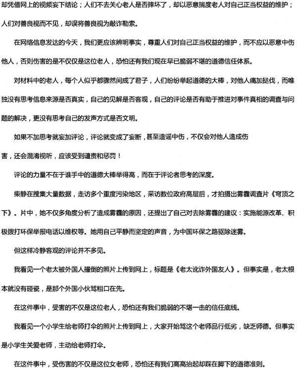 综合上述材料所引发的思考和感觉,写一篇不少于800字论说文。