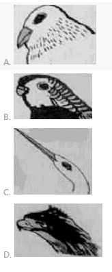 20、在进化的过程中,鸟嘴形成了各种不同的形状,下面是鹦鹉、鹭鸶、老鹰、金丝雀的头部画像,鹭鸶是哪一个?( )